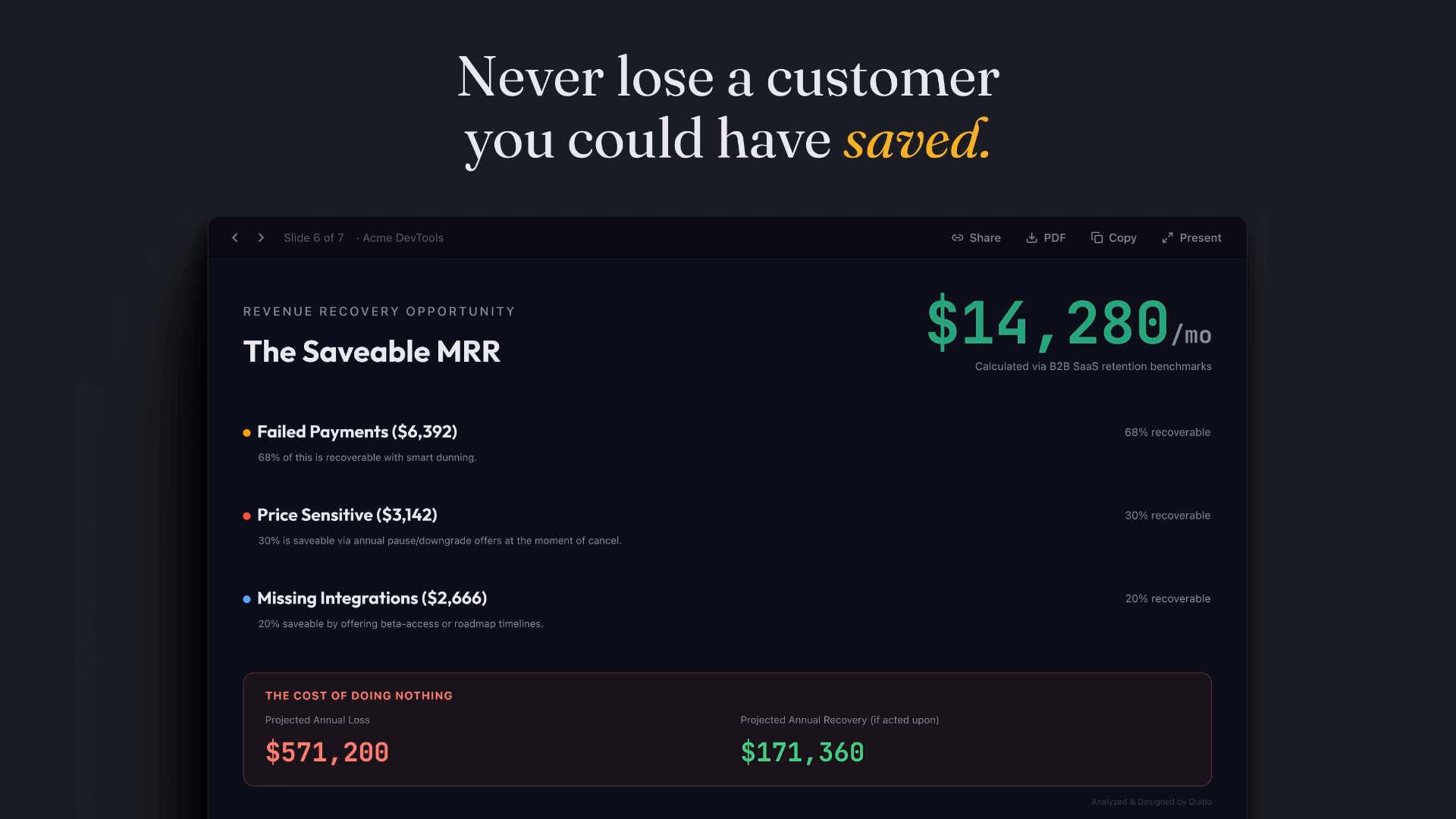 Quitlo’s AI has voice conversations with SaaS customers when they cancel, fail payments, or score low on NPS, delivering structured insights to Slack.